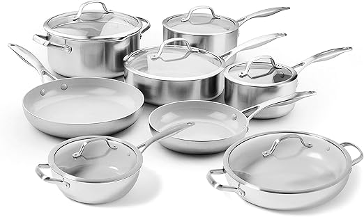 Pictures. I am a food and beverage consultant and have three full sets of pans at home (copper from a beautiful french company, stainless from a pennsylvania. Greenpan valencia pro hard anodized ceramic nonstick cookware.